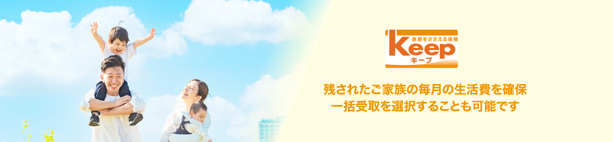 残されたご家族の毎月の生活費を確保することができます。また、毎月の受け取りにかえて、一括受け取りも選択できます。